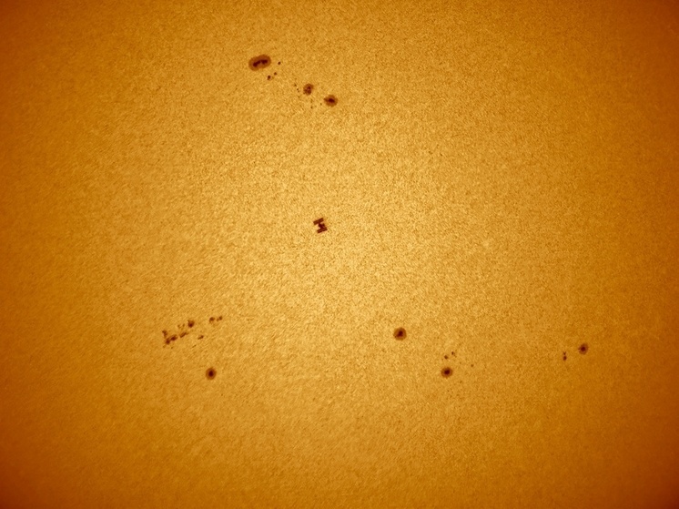 Сегодня новосибирский астрофотограф Алексей Поляков продемонстрировал удивительное астрономическое явление, запечатлев пролёт Международной космической станции (МКС) на фоне солнечного диска. Снимками он поделился на своих страницах в социальных сетях.